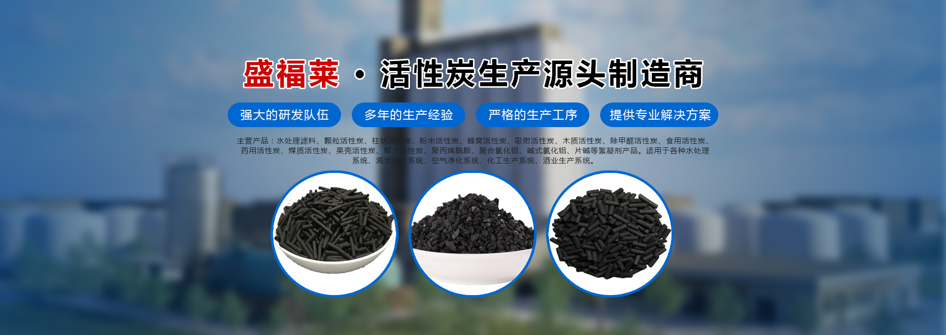 河南盛福萊環(huán)保科技有限公司是一家專業(yè)銷售各種規(guī)格型號活性炭、污水處理藥劑、碳源的公司,位于中原凈水材料基地-鞏義市,是從事各類活性炭及相關(guān)產(chǎn)品生產(chǎn)、研發(fā)及銷售的一體化企業(yè)。主營產(chǎn)品:水處理濾料、顆粒活性炭、柱狀活性炭、粉末活性炭、蜂窩活性炭、吸附活性炭、木質(zhì)活性炭、除甲醛活性炭、食用活性炭、藥用活性炭、煤質(zhì)活性炭、果殼活性炭、椰殼活性炭、聚丙烯酰胺、聚合氯化鋁、堿式氯化鋁等絮凝劑產(chǎn)品、碳源,適用于各種水處理系統(tǒng)、海水淡化系統(tǒng)、空氣凈化系統(tǒng)、化工生產(chǎn)系統(tǒng)、酒業(yè)生產(chǎn)系統(tǒng)。服務(wù)于各種大、中、小型自來水廠、石油化工廠、造紙印染廠、鋼鐵廠、發(fā)電廠、食品廠、冶金廠等行業(yè)。河南盛福萊環(huán)??萍加邢薰緞?chuàng)立以來
